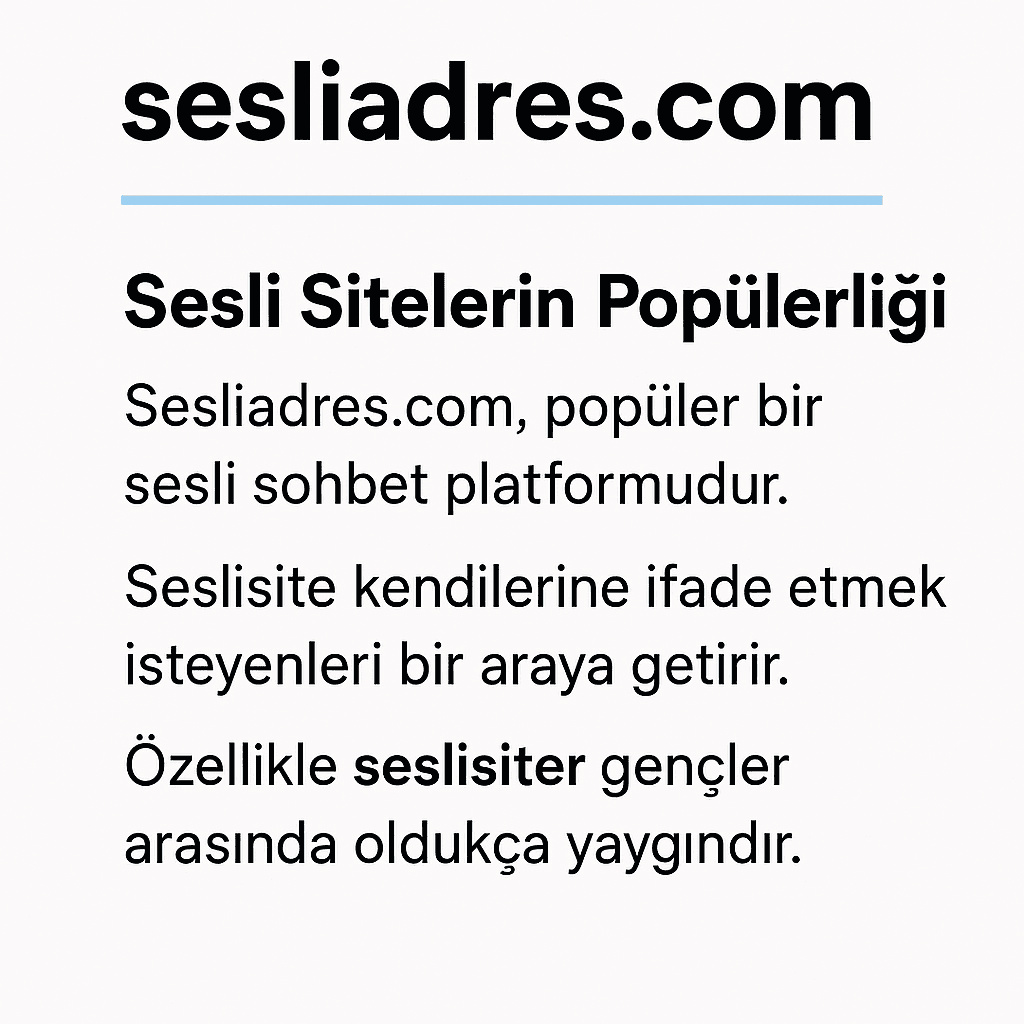 Sesliadres.com Gerçek kullanıcılarla tanış, arkadaşlık kur, keyifli sohbetlerin tadını çıkar! 👉 Hemen tıkla: www.sesliadres.com